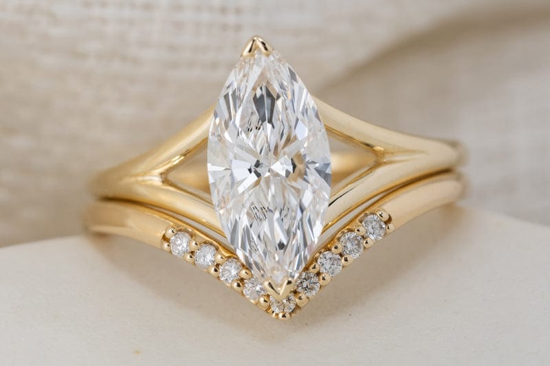 For couples seeking a ring with timeless appeal and a touch of drama, elongated stones offer the perfect balance of sophistication and statement-making design. These shapes also pair beautifully with curved or stacked bands for a modern twist.