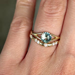 1.01ct Stella Round Teal Blue Sapphire & Diamond Enagement Ring