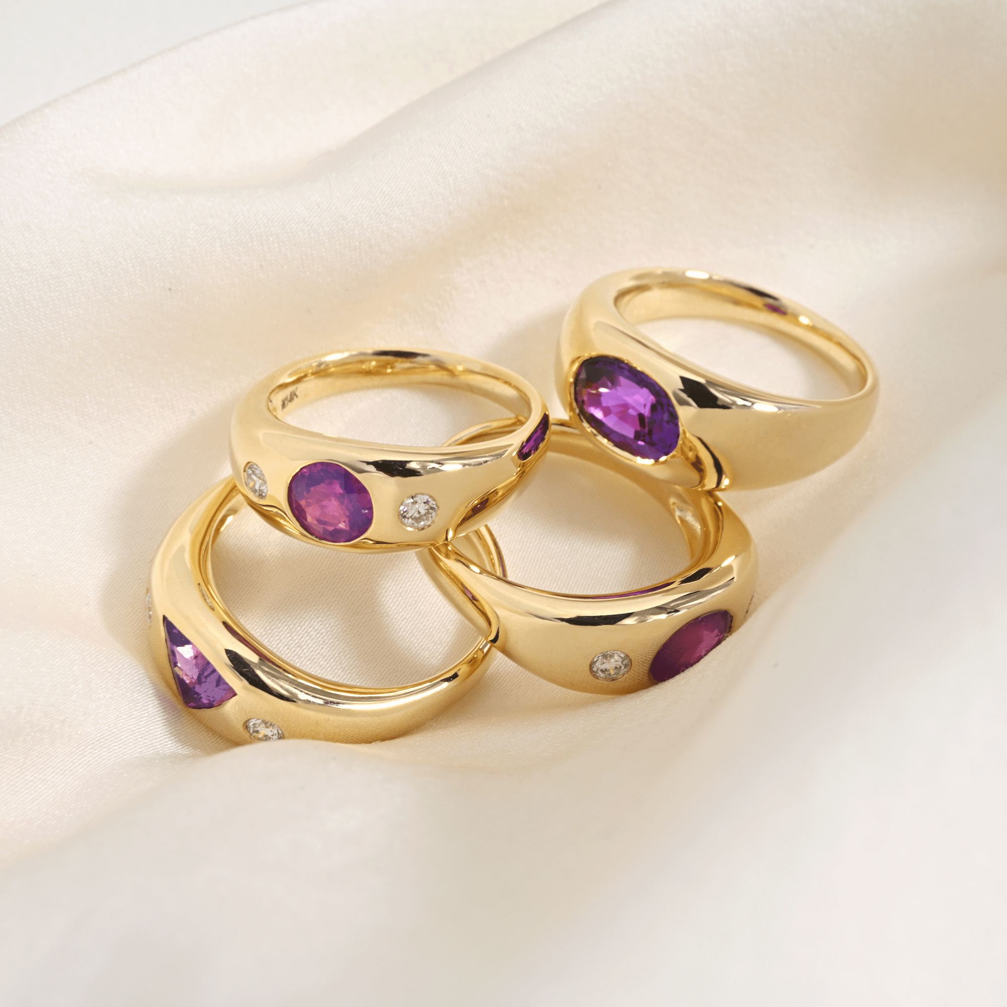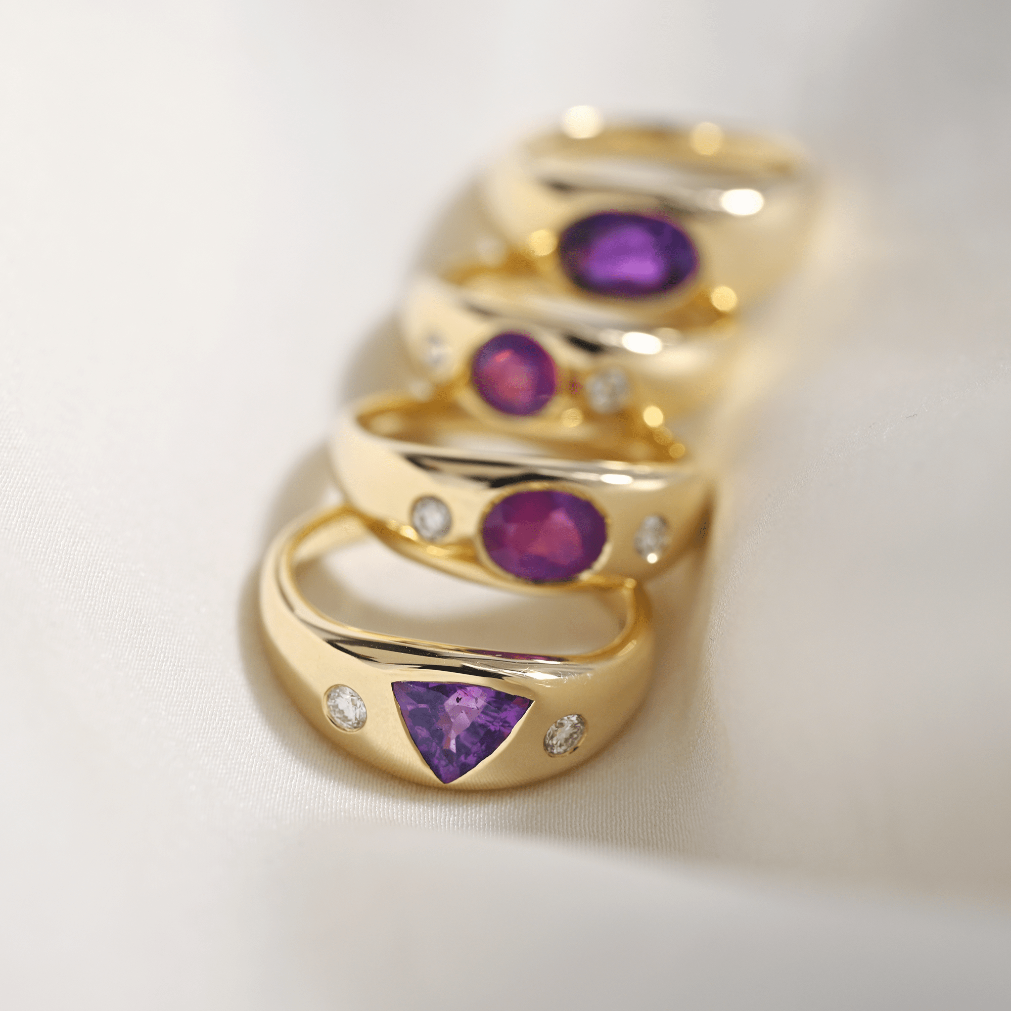 Interested in perhaps adding/changing stones in our designs? Custom orders are our specialty! Learn more about our custom order process and get in touch with us if you'd like to discover ways you can make your ring reflect your personality.