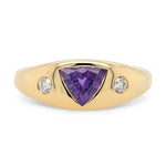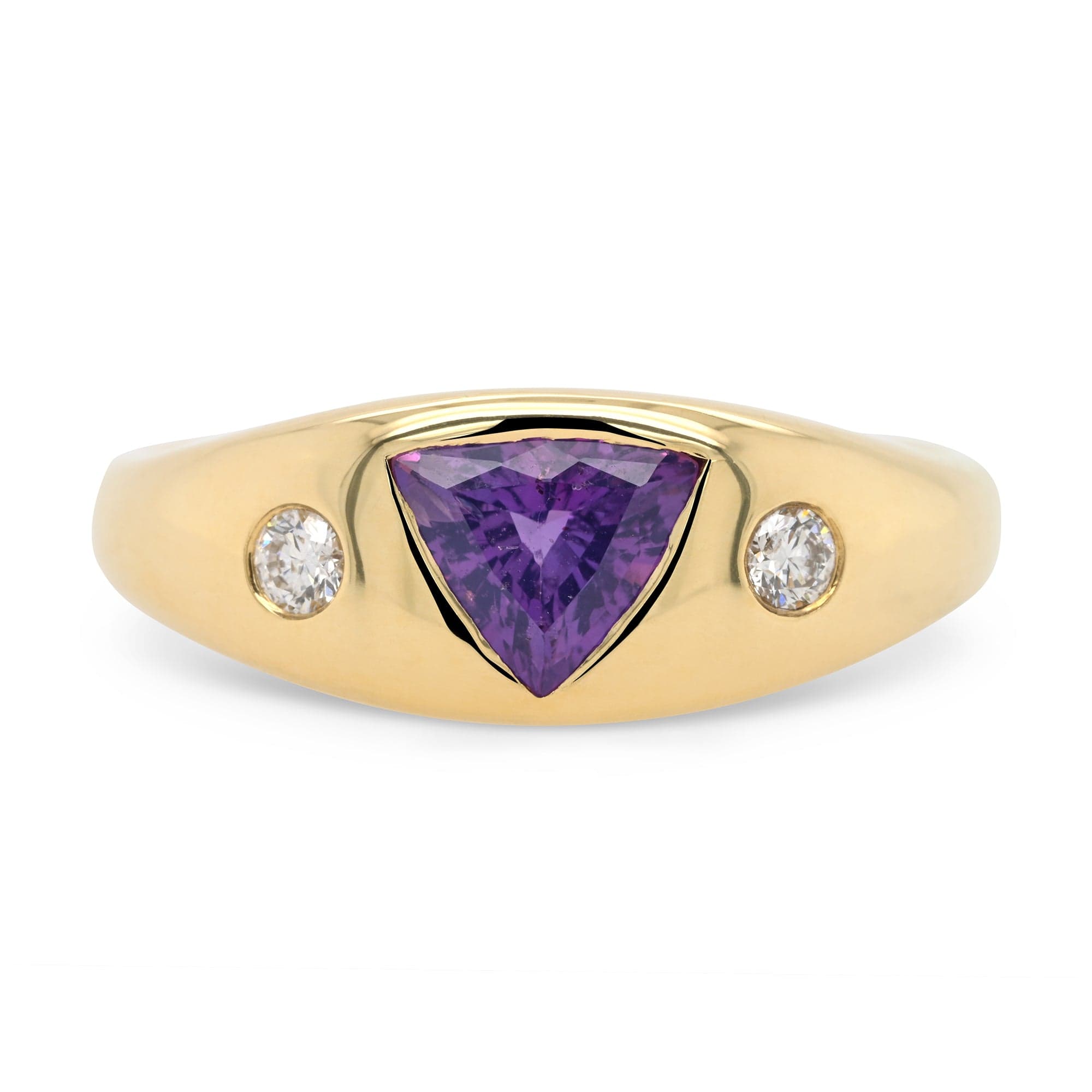 Let this new take on our popular Rey ring bring you empowerment with its bold trillion shape. We added brilliant white diamonds to contrast with the royal purple triangle sapphire. This style is perfect for celebrating a milestone or as an alternative unisex engagement ring.