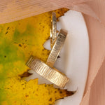 The Birch Wedding Band is perfect if you want to mix up your style with a little bit of forest-inspired texture. The linear strokes and woodgrain texture give this unisex wedding ring a unique rugged and organic feel.