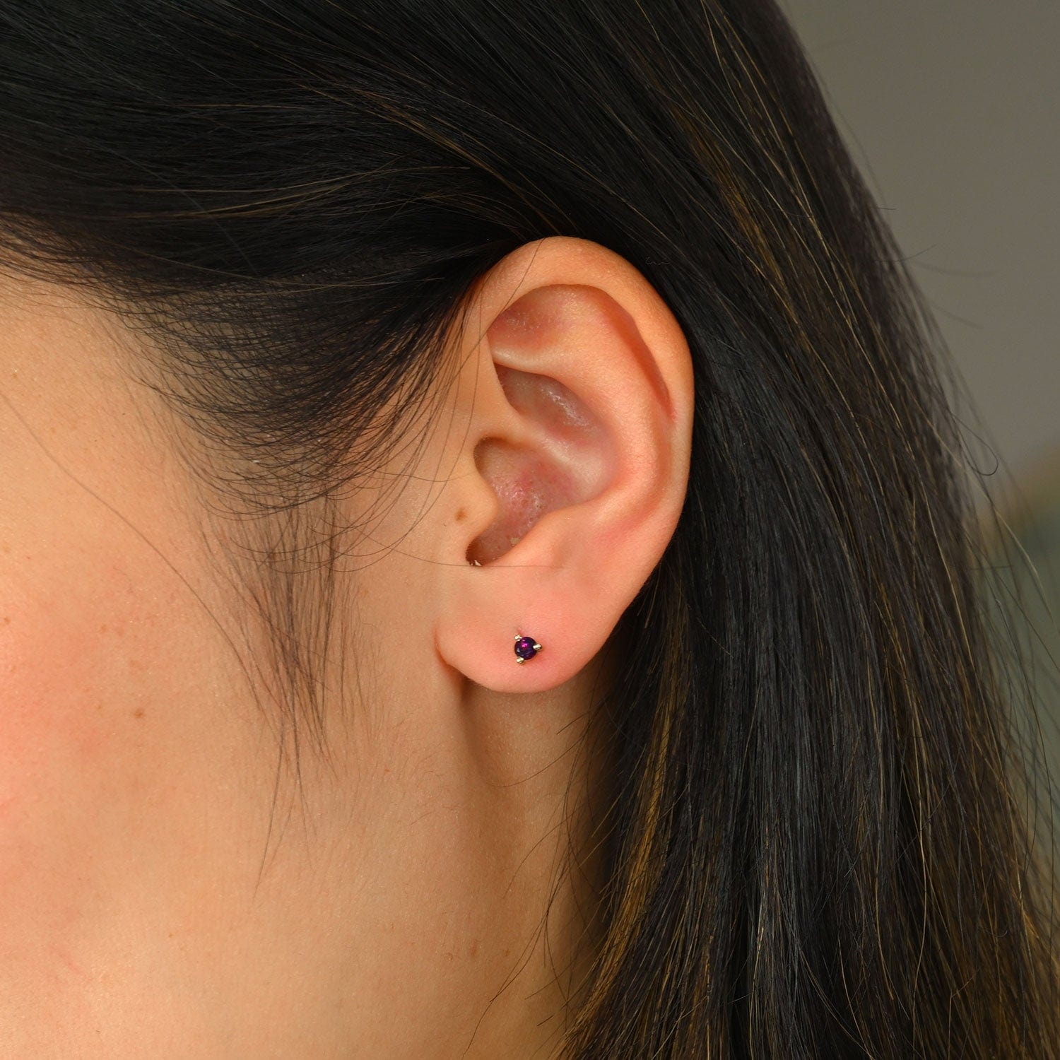 Radiating a regal purple glow, these amethyst stud earrings bring a sense of calm and balance. The 3mm gemstones, set in a delicate prong setting, make an elegant birthstone choice for February.