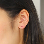 Bold and fiery, these ruby stud earrings embody love and strength. The 3mm gemstones, held in a timeless prong setting, add an effortless pop of color to any look.