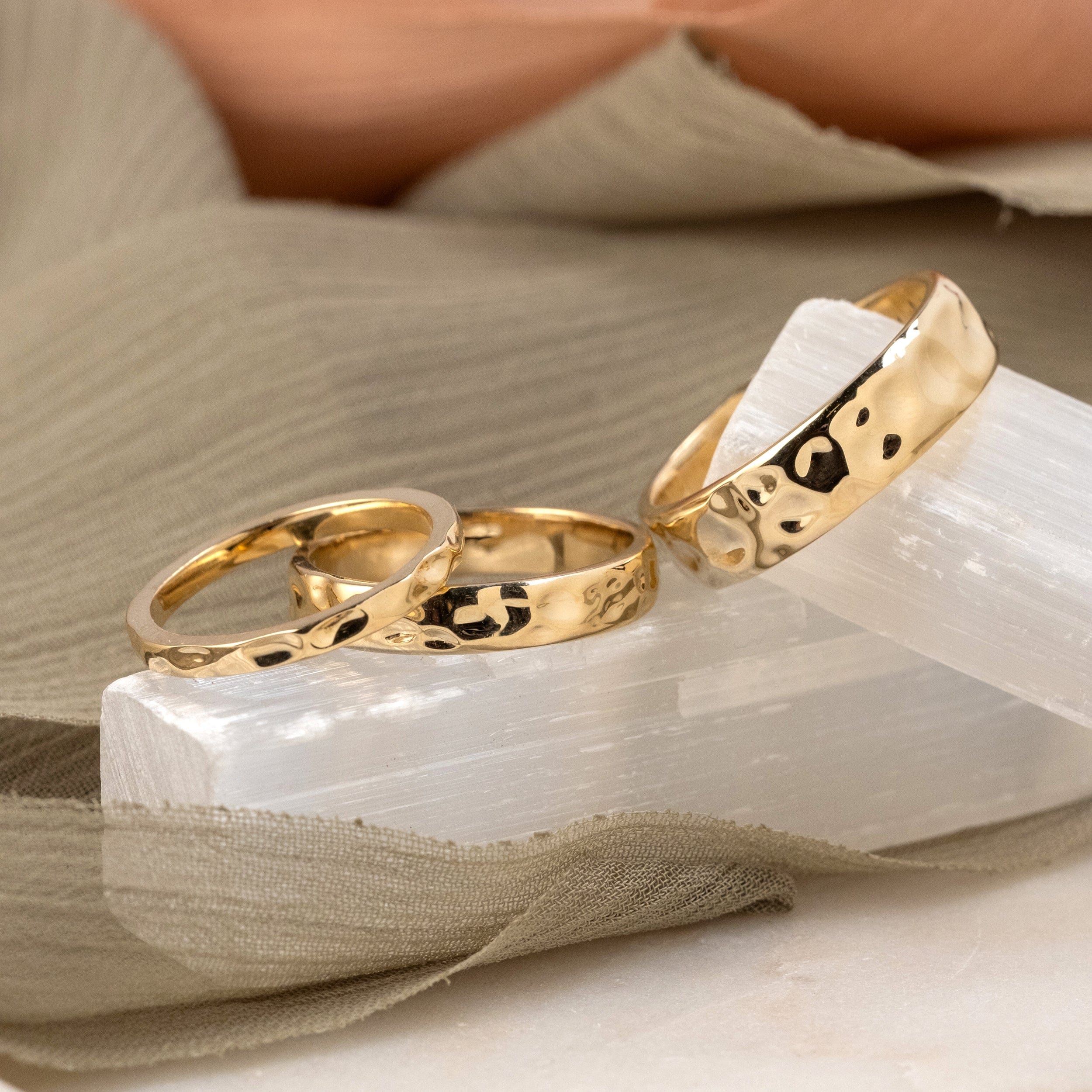 Inspired by the sand dunes of the coast, these bands are uniquely textured with gentle rises and valleys in the gold surface.