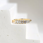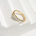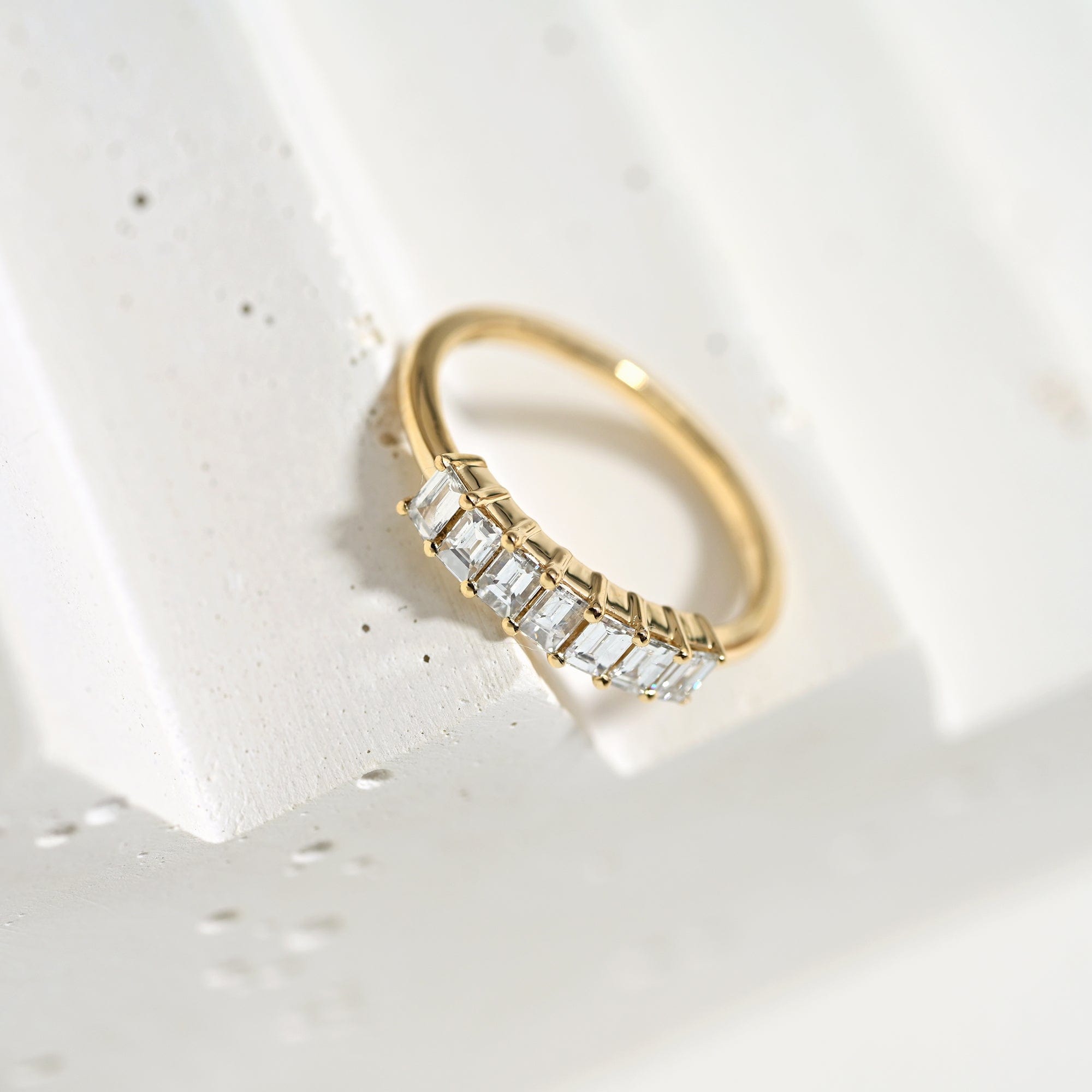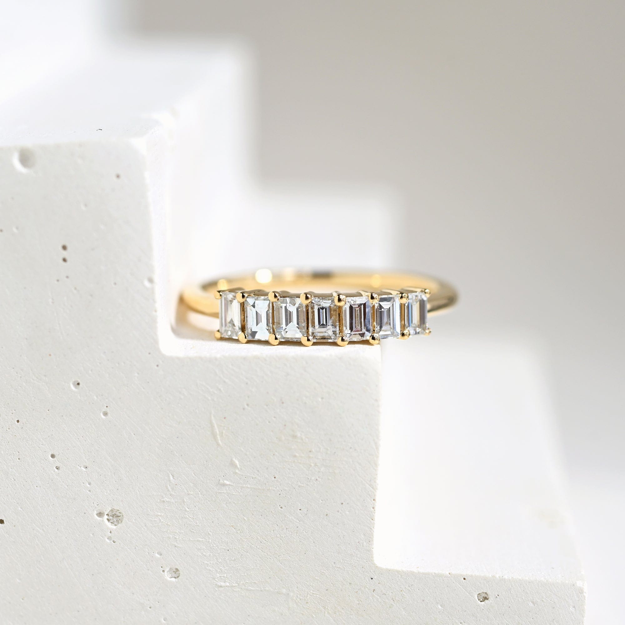 Featuring a row of emerald-cut diamonds, this ring is a wearable piece of art. Worn as a wedding band, engagement ring, or daily accessory, our Demi Band is a multifaceted must-have.
