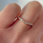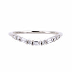 A wave band to gently contour your low profile engagement ring. This wave band is created with alternating baguettes and round diamonds.