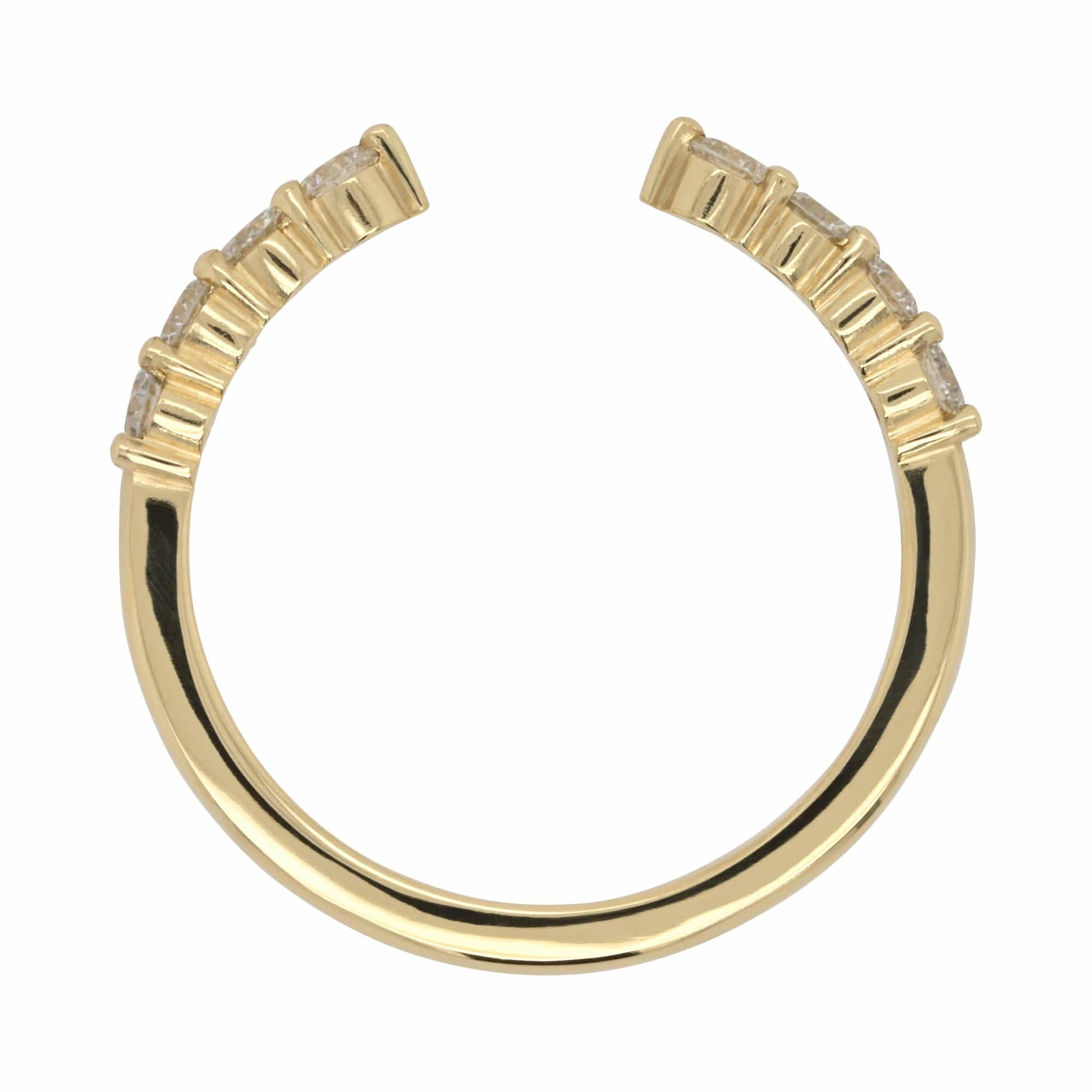 This sleek yellow gold cuff band features a row of sparkling diamonds on each side and an open center, offering eye-catching negative space that makes it perfect for nesting with engagement rings or stacking styles.