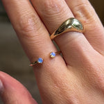 Featuring an open shank style with negative space to enhance and delight, this version of our Dua ring is set with vibrant little opals.