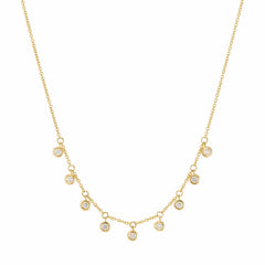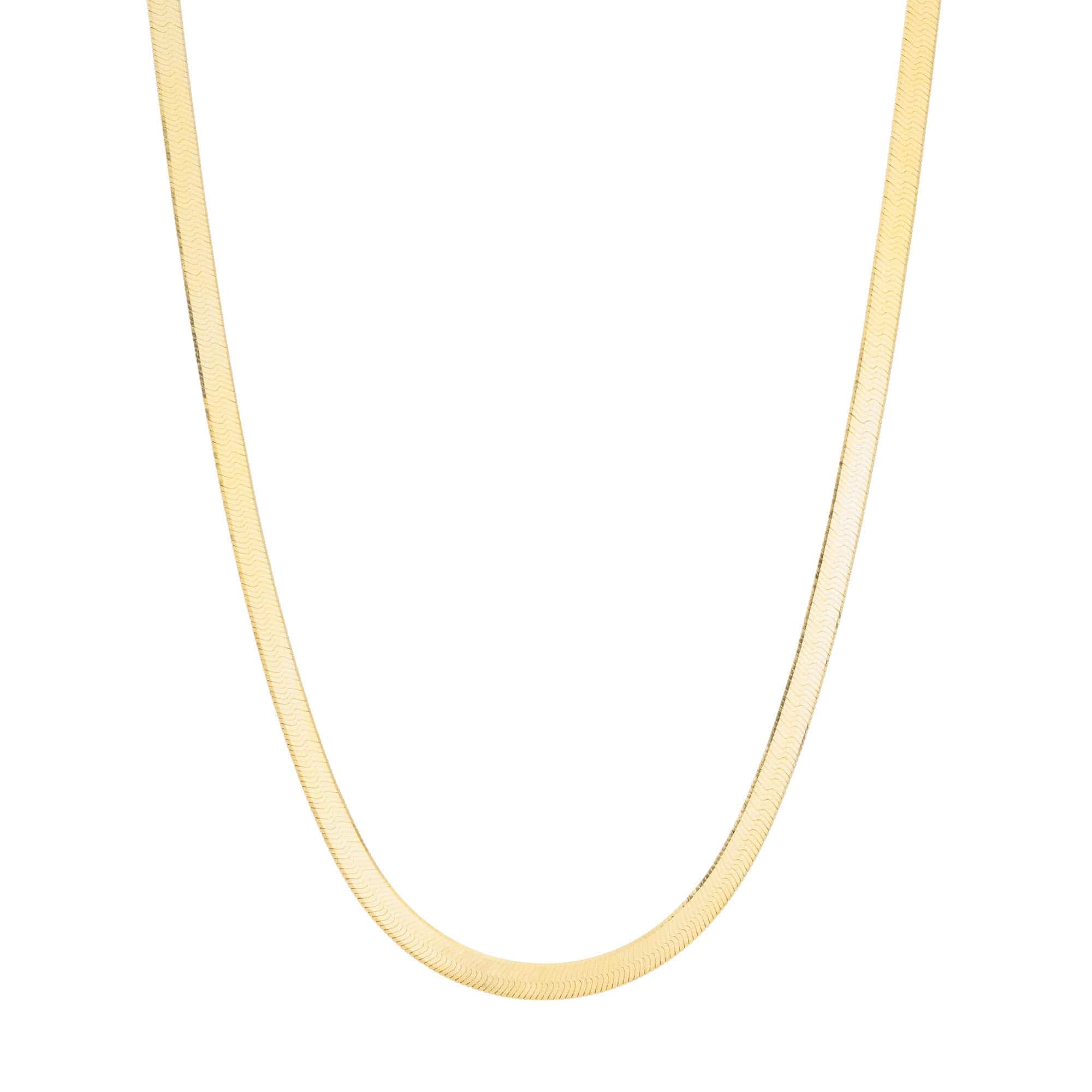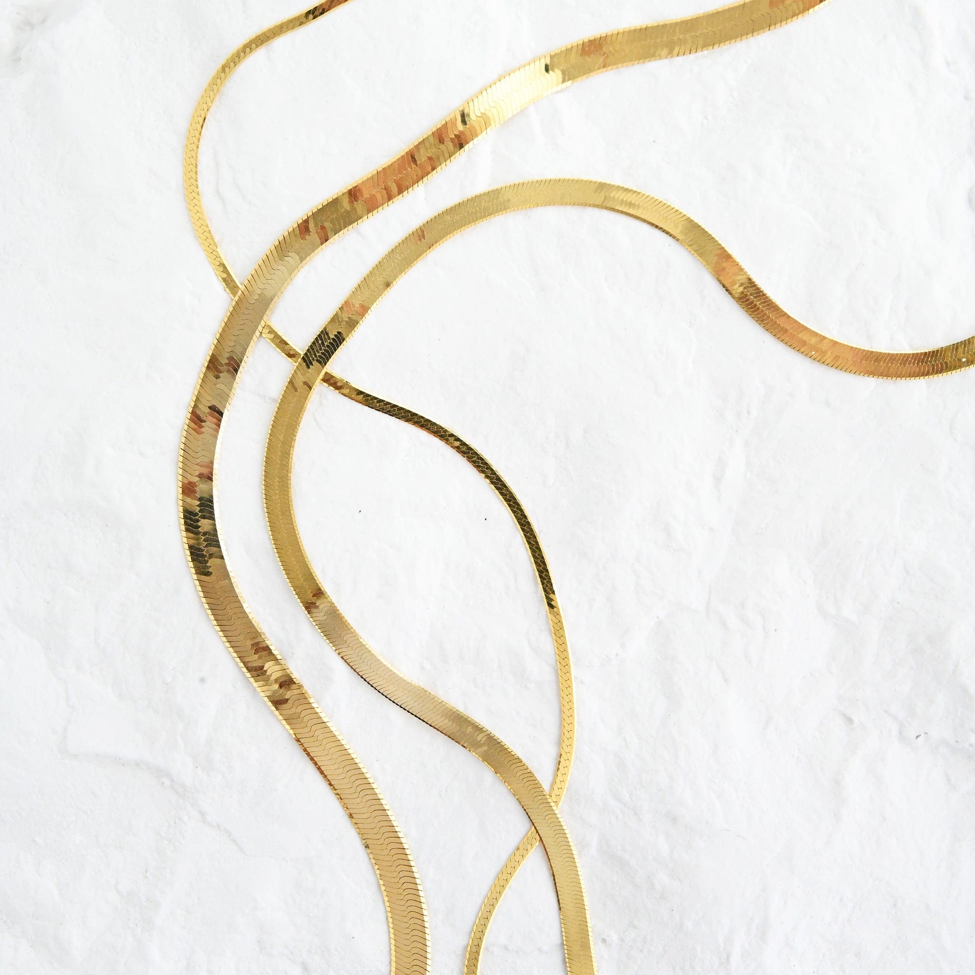 These smooth and shimmery chains rest beautifully on your collarbone and layer wonderfully with other chain styles. This is our heaviest option, but we also carry a thinner, fine version and a medium version. This chain is solid, not hollow, and made with 14K gold. Layer your chain with our Diamond Drop Necklace for a little sparkle.