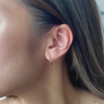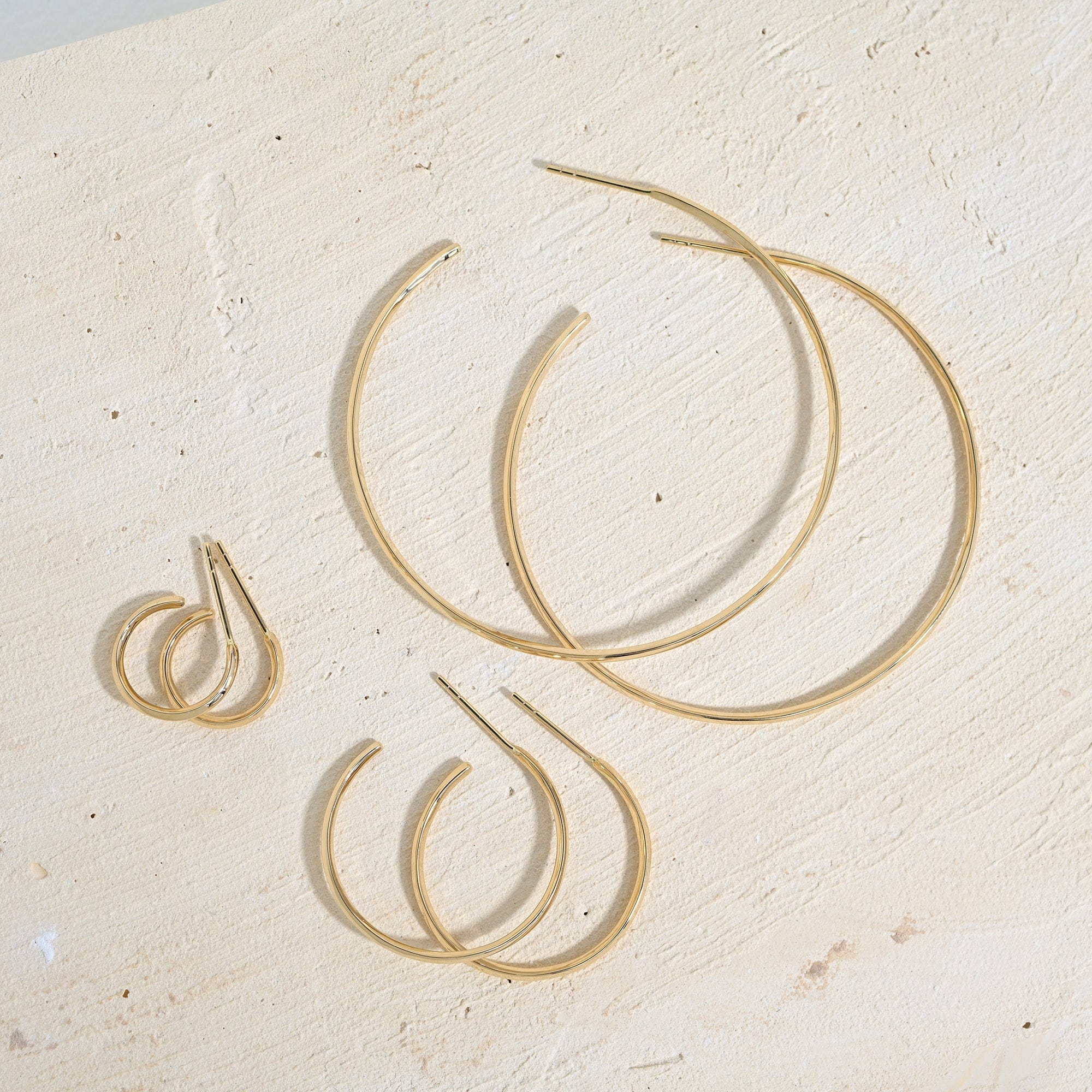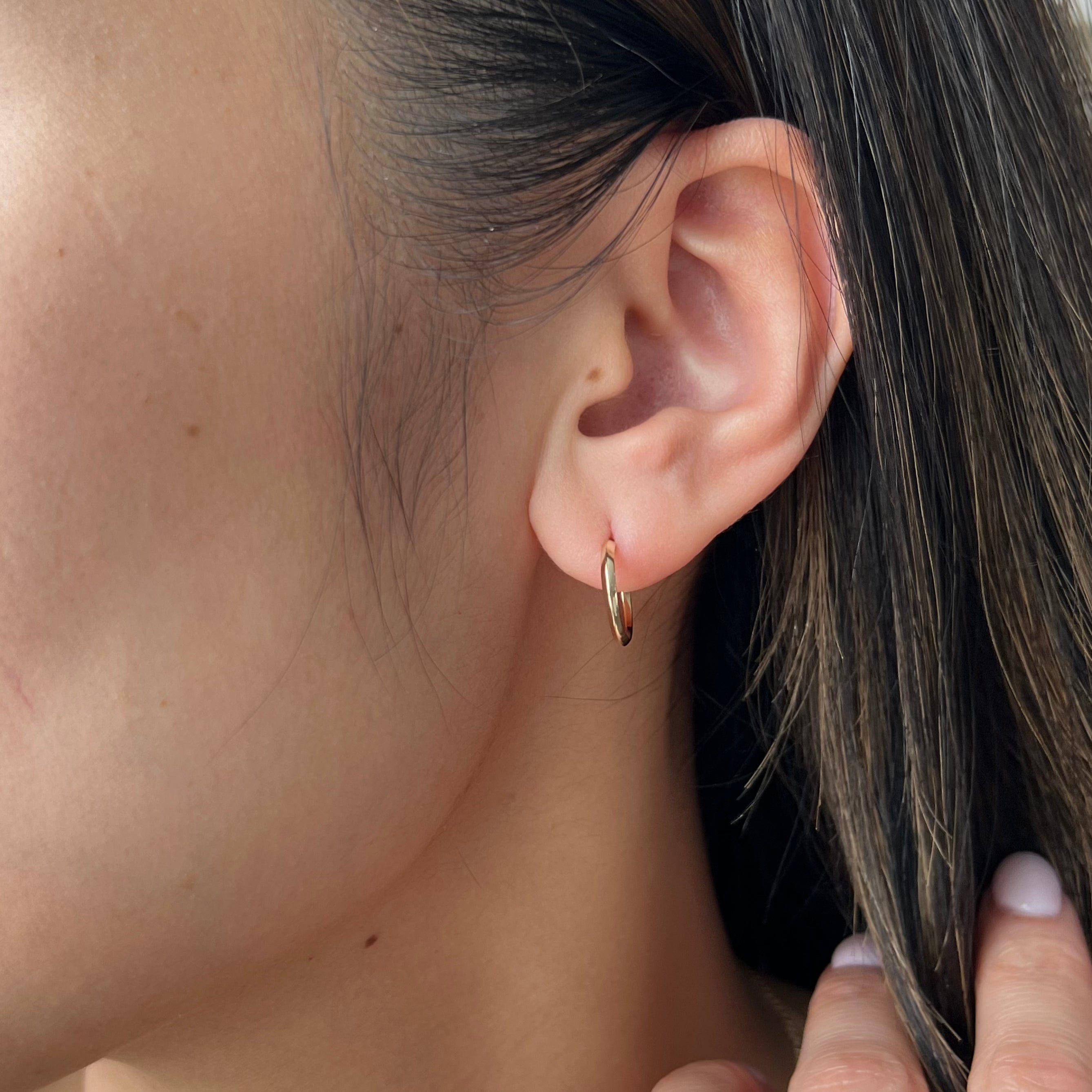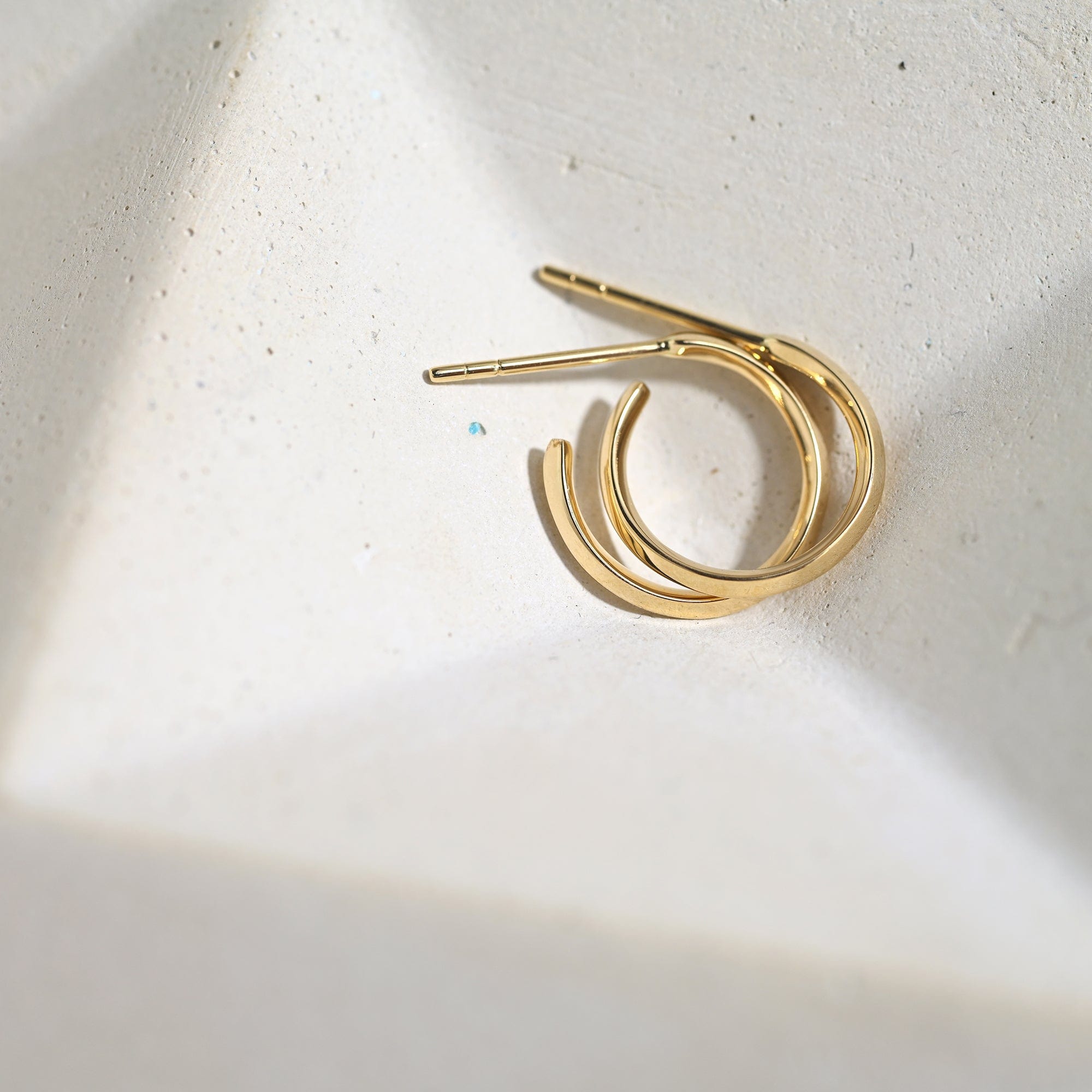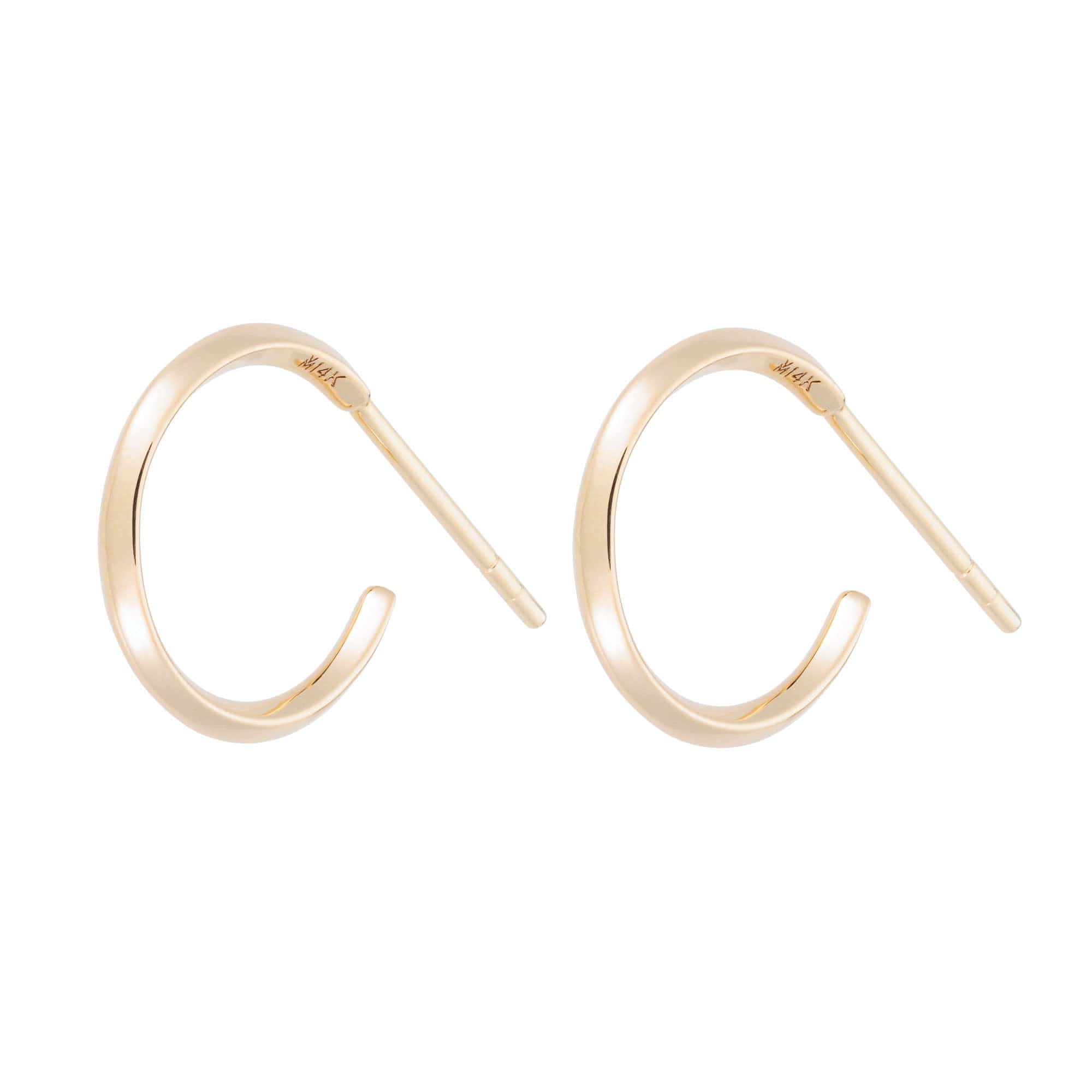A twist on the classic hoop earrings in a perfect size for daily wear. These are hand-made with a unique knife edge on the exterior of the hoop. These earrings will arrive with their matching earring backs and the posts are double-notched for extra security.