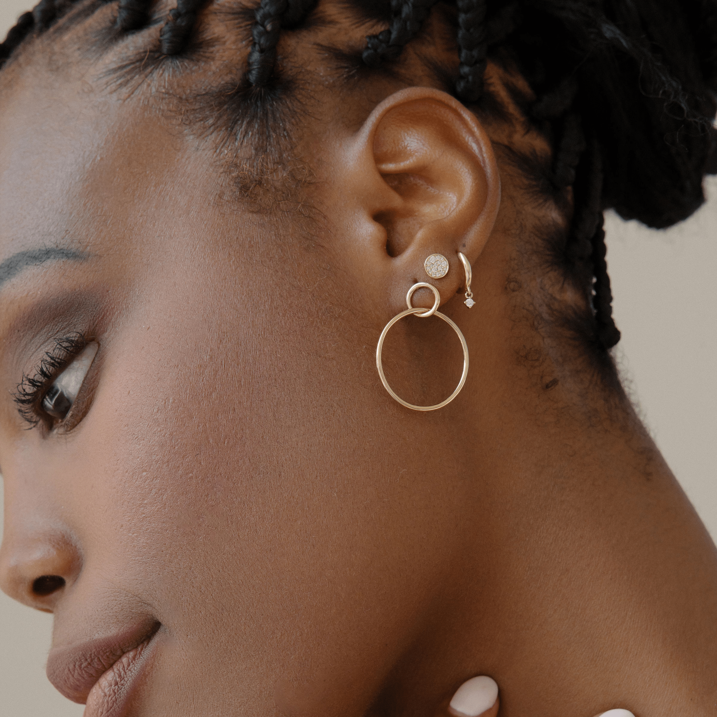 Double hoops feature a timeless design with two interlocking hoops crafted from lustrous gold, making them a must-have addition to any jewelry collection. These earrings will arrive with their matching earring backs and the posts are double-notched for extra security.