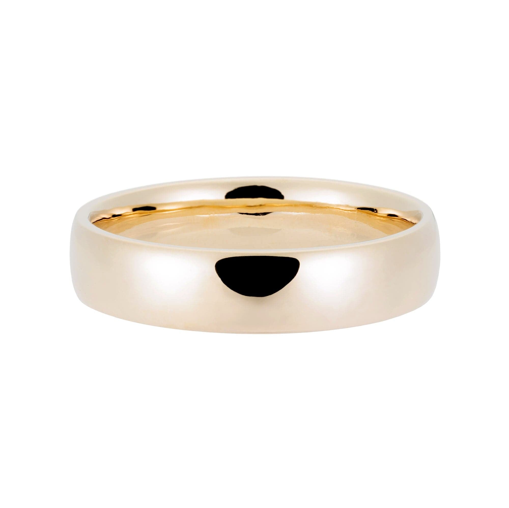 The rounded edges of this classic style wedding band provide comfortable wear along with a timeless design in its simplicity. Perfect for any bride or groom that seeks a traditional band with a modern twist.