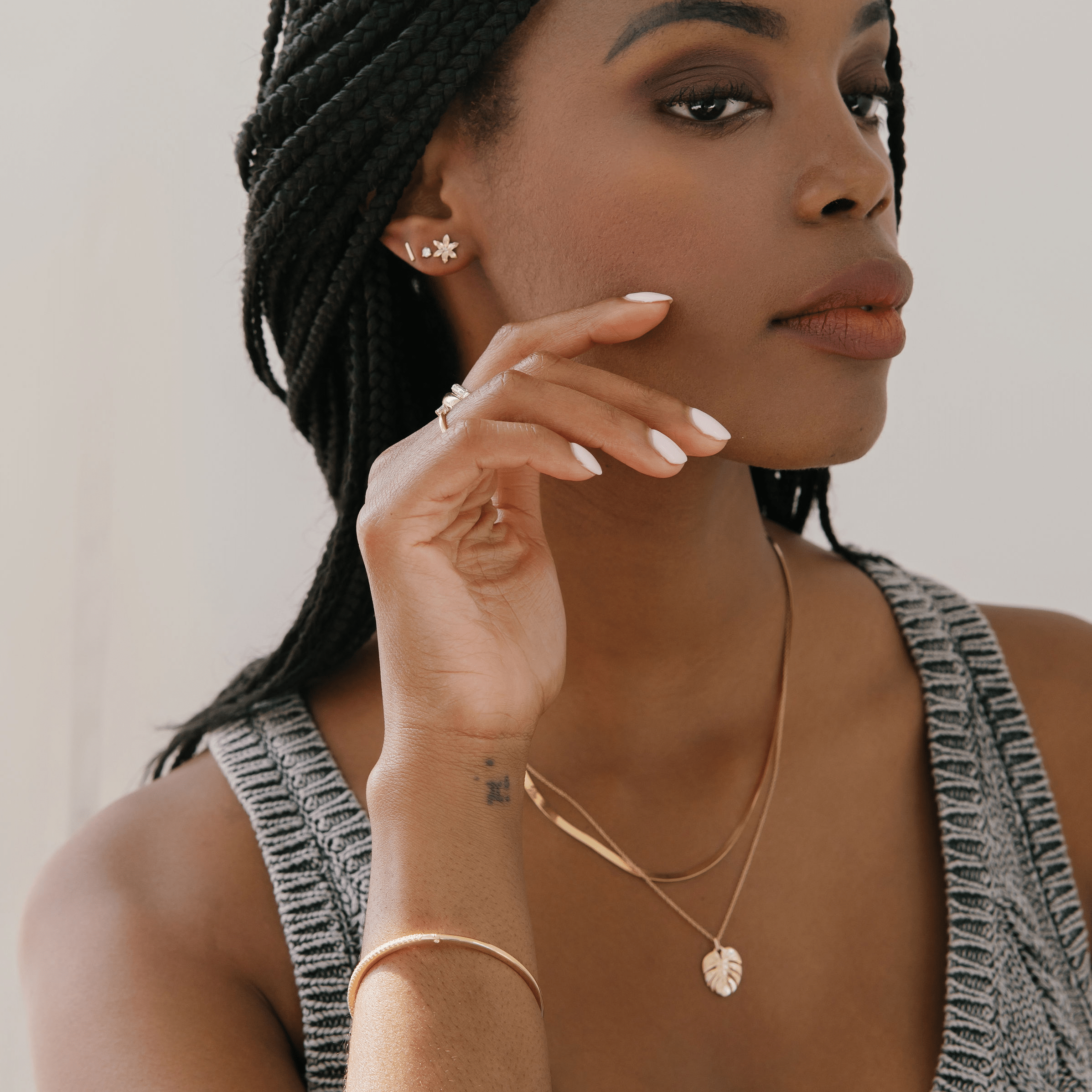 Meet your new favorite plant—one you’ll never need to water. Our Monstera Leaf Pendant is a subtle nod to your love of greenery, crafted for those who appreciate nature’s intricate designs. Thoughtfully detailed and effortlessly chic, it's perfect for layering or wearing solo. Pair it with our Monstera studs for a look that’s lush from every angle.