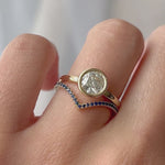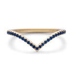 A new take on the phrase "something blue". Embellished with natural blue sapphire, this contour band would look great around our engagement rings or worn alone for a unique addition to your everyday look. Shown with our Sapphire Wave band.