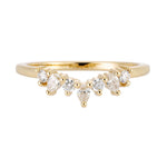 This band sports a unique spin on our diamond wave band. The wave of pear diamonds contours beautifully around your engagement ring.