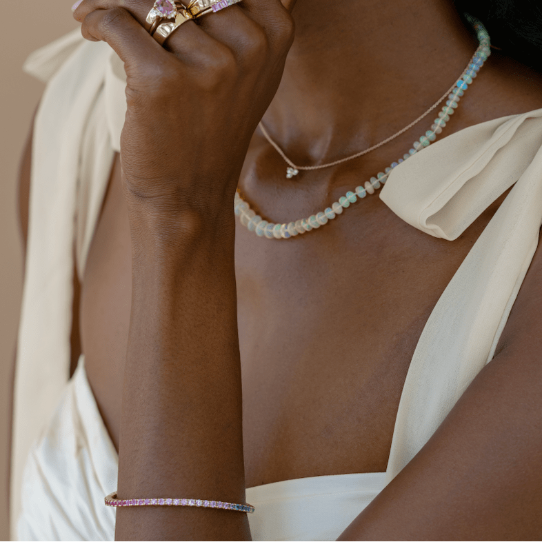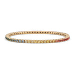 A vibrant spectrum of hand-selected sapphires radiates across this flexible 14K gold bracelet, capturing the full beauty of the rainbow in every movement. Designed for comfort and lasting shine, it’s a refined piece that brings color to every day.