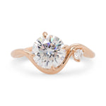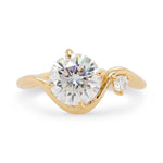 The sculptural waves of our Venus setting hug an exquisite round moissanite. Accented with a smaller moissanite that adds a touch of sparkle, this low-profile ring combines comfort and sophistication.