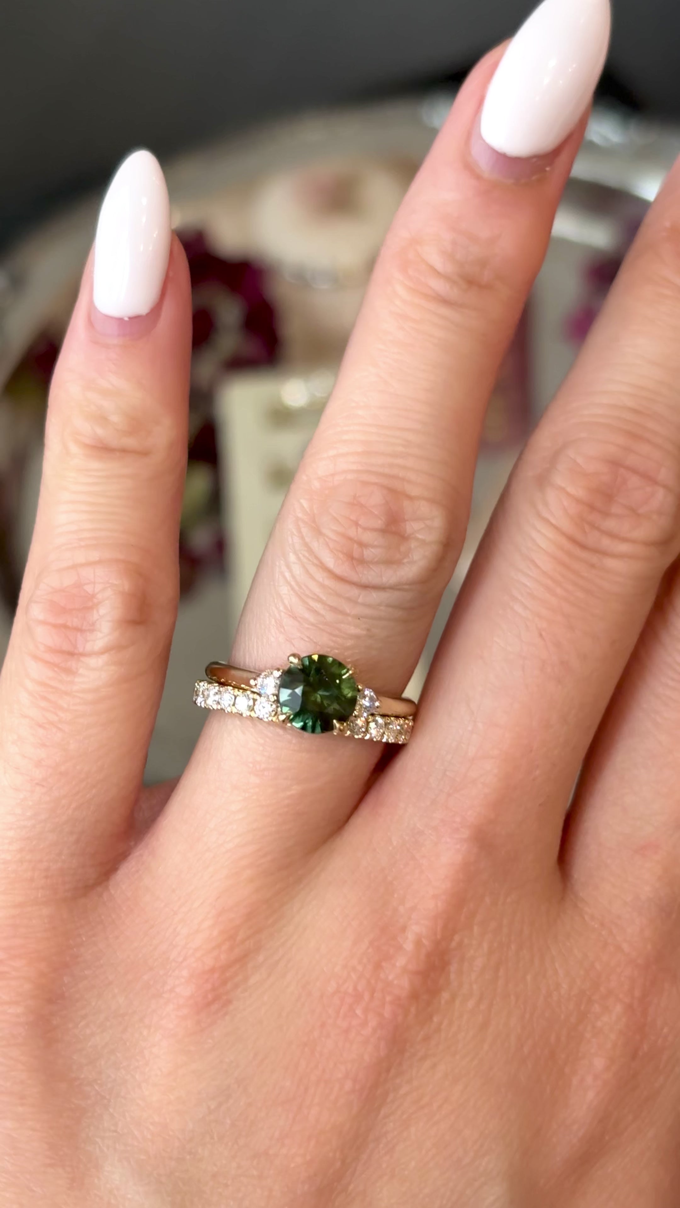 1.62ct Zara Round Green Sapphire & Diamond Engagement Ring