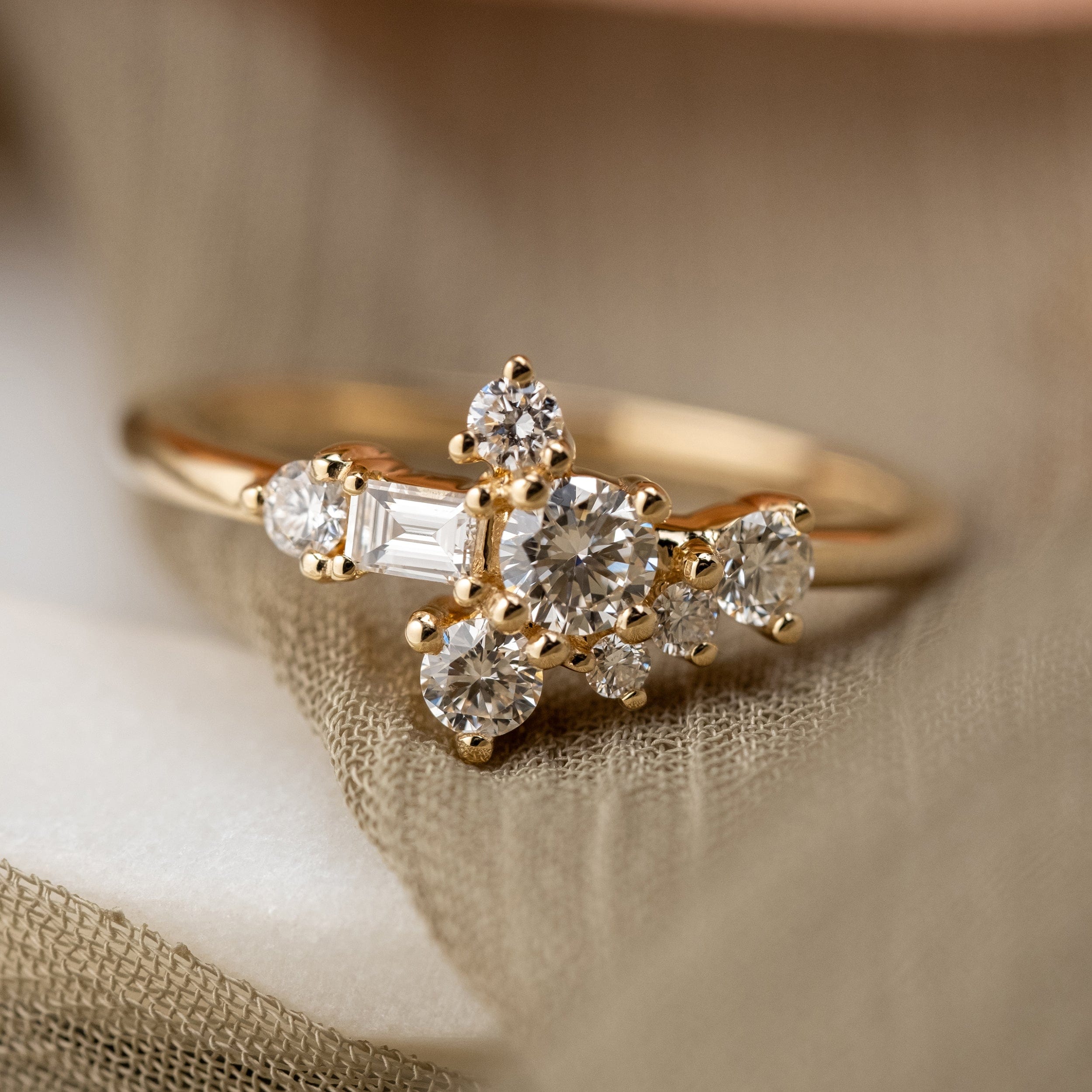 Inspired by nature's beautiful, organic mosaics, our handcrafted  Diamond Tidepool Ring features an array of shimmering diamonds that embody the sparkles of gentle tidepool ripples. This asymmetrical diamond ring crafted in 14k gold is a Valerie Madison original that is sure to be a standout piece in your jewelry collection.