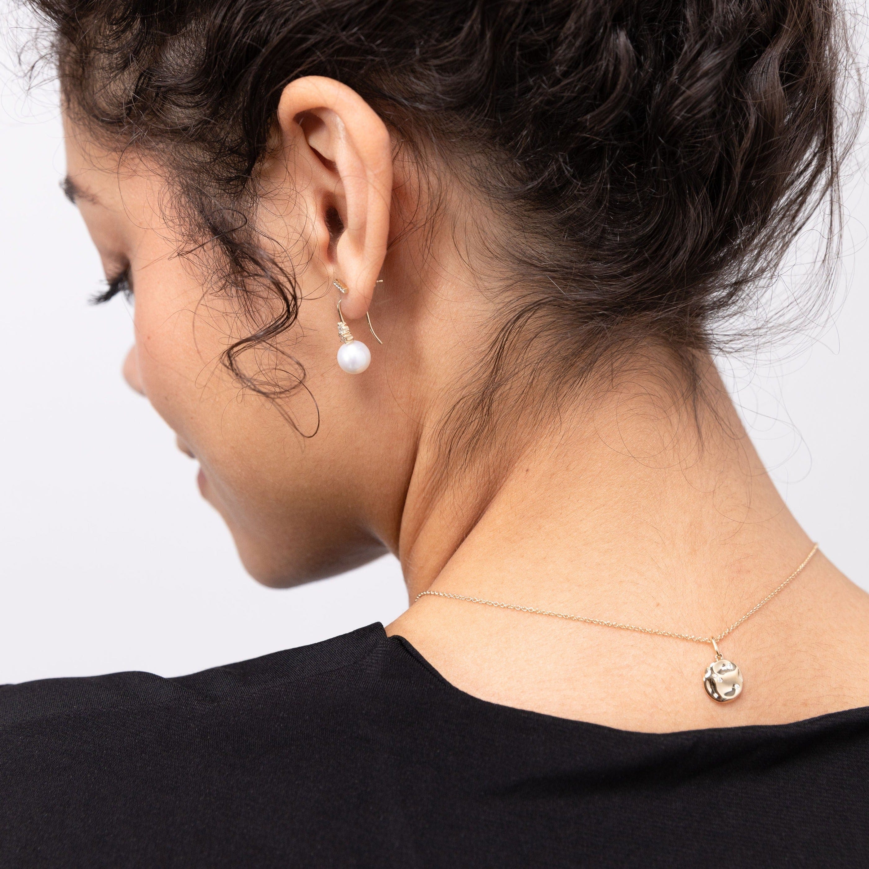 Inspired by the sand dunes of the coast, this pendant is uniquely textured with gentle rises and valleys in the gold surface. Embellished with white diamonds, this unique pendant is modern classic.