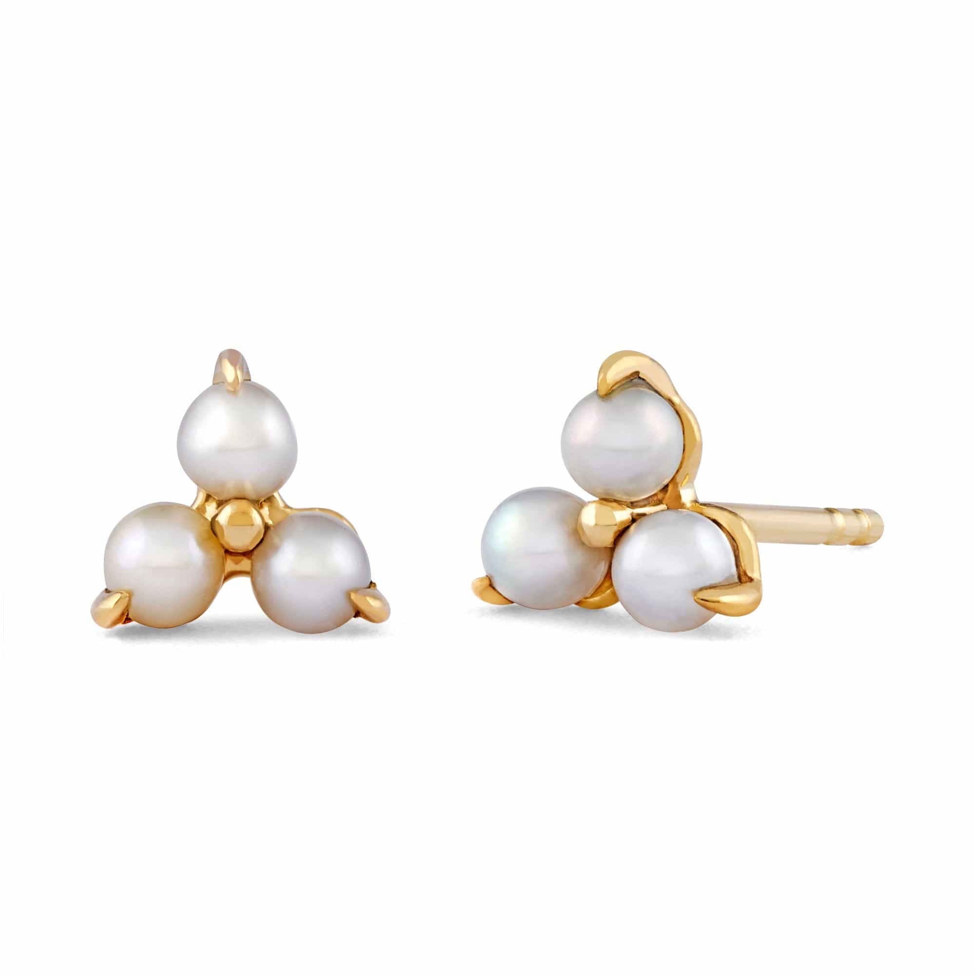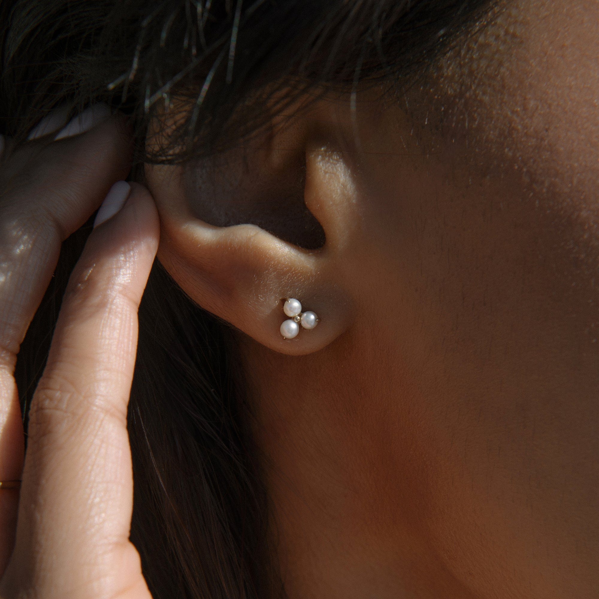 These elegant Florette stud earrings feature lustrous freshwater pearls delicately arranged in a small cluster, adding a touch of sophistication to any outfit. Their timeless design makes them a versatile accessory suitable for both formal occasions and everyday wear.