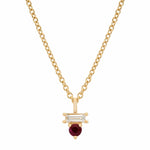 Featuring a vibrant round cut ruby accented by a sparkling white baguette diamond, this delicate pendant necklace perfectly celebrates July's birthstone in our newly revamped design. Great as a gift to yourself or a loved one, our Birthstone Baguette Necklaces are sure to become a cherished piece of your jewelry collection.