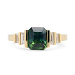 Custom Green Emerald Cut Sapphire & Diamond Engagement Ring