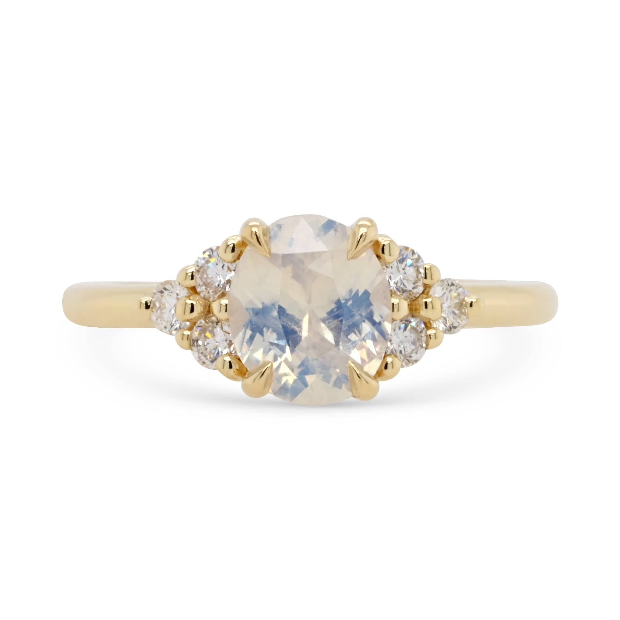 Custom Opalescent Oval Sapphire and Diamond Engagement Ring