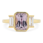 Custom Purple Radiant Cut Sapphire & Diamond Three Stone Bezel Engagement Ring