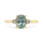 Custom Teal Oval Cut Sapphire & Diamond Three Stone Engagement Ring