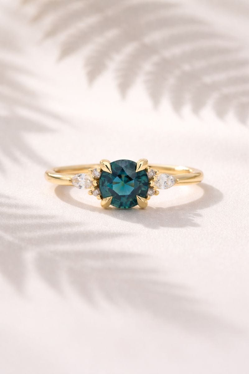1.03ct Lena Round Cerulean Sapphire & Diamond Engagement Ring