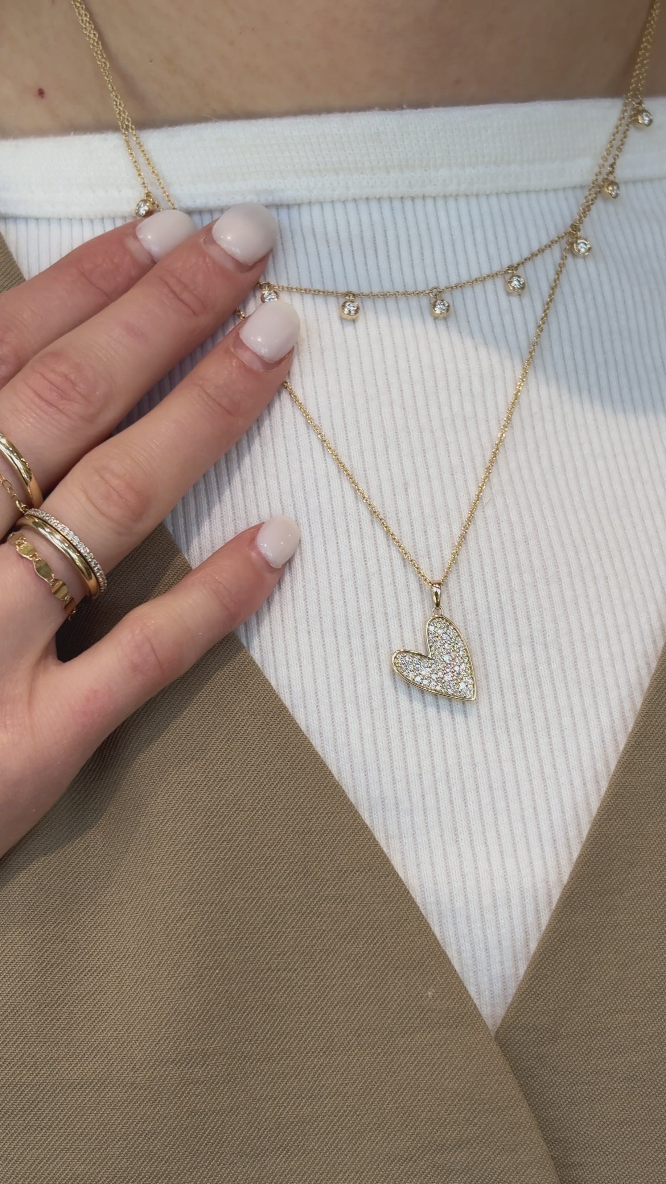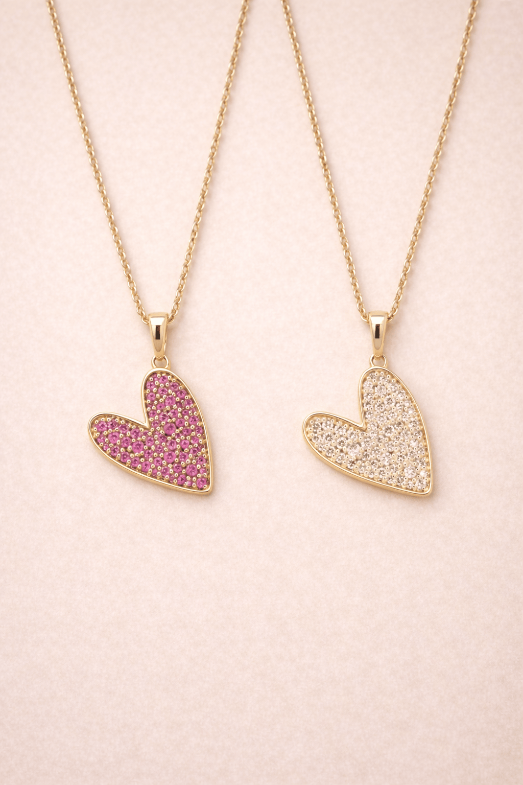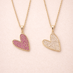 A romantic yet refined statement, the Diamond Heart Pendant Necklace features a timeless variety of diamonds set in a heart silhouette. Thoughtfully designed as a 2-in-1 reversible piece, one side showcases the sparkling diamonds while the other is smooth, polished gold—perfect for personal engraving or a clean, minimalist look. Wear it either way to suit your mood, making this necklace both deeply personal and effortlessly versatile.