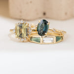 0.85ct Teal Australian Sapphire Tapered Baguette and 0.46ct Diamond Baguette Ring