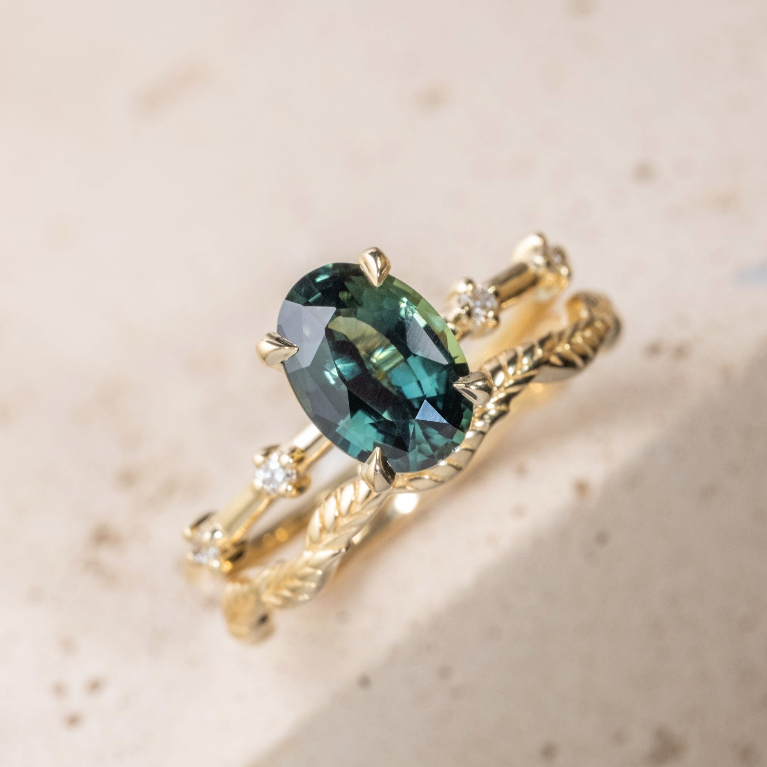 1.76ct Celestial Teal Oval Sapphire & Diamond Engagement Ring
