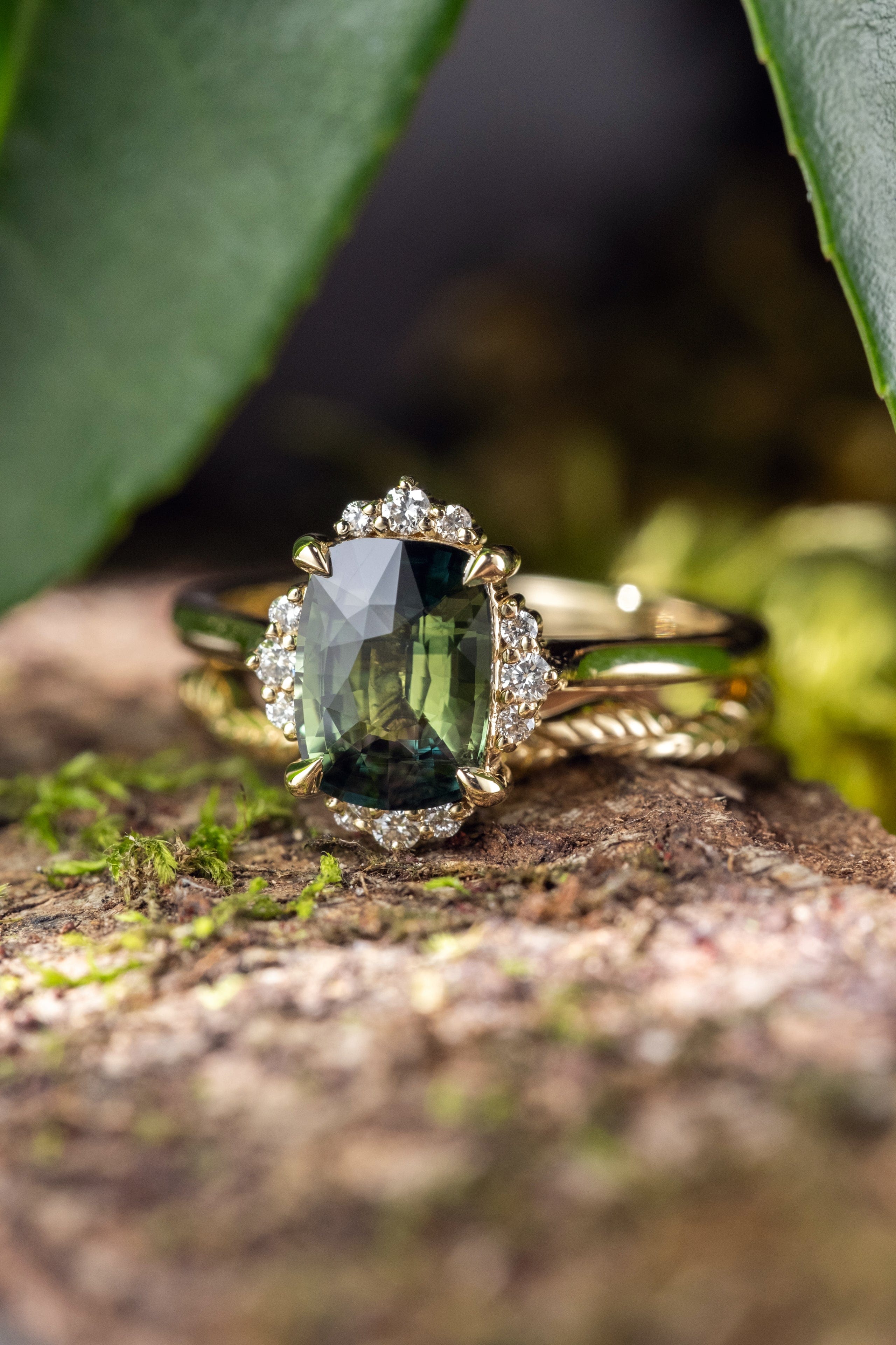 1.86ct Serena Cushion Teal Sapphire & Diamond Engagement Ring