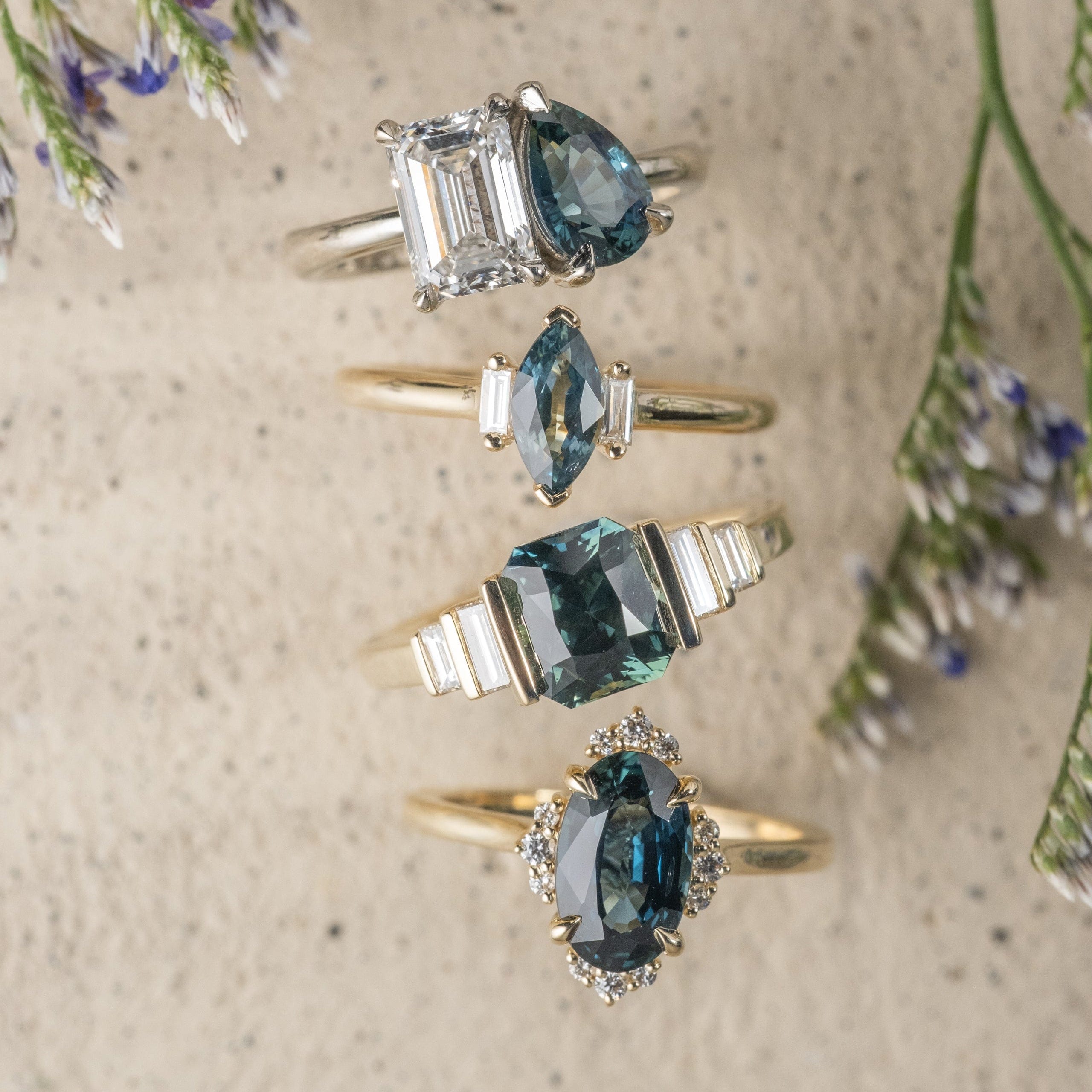 2.54ct Clara Teal Blue Radiant Cut Sapphire and Diamond Engagement Ring