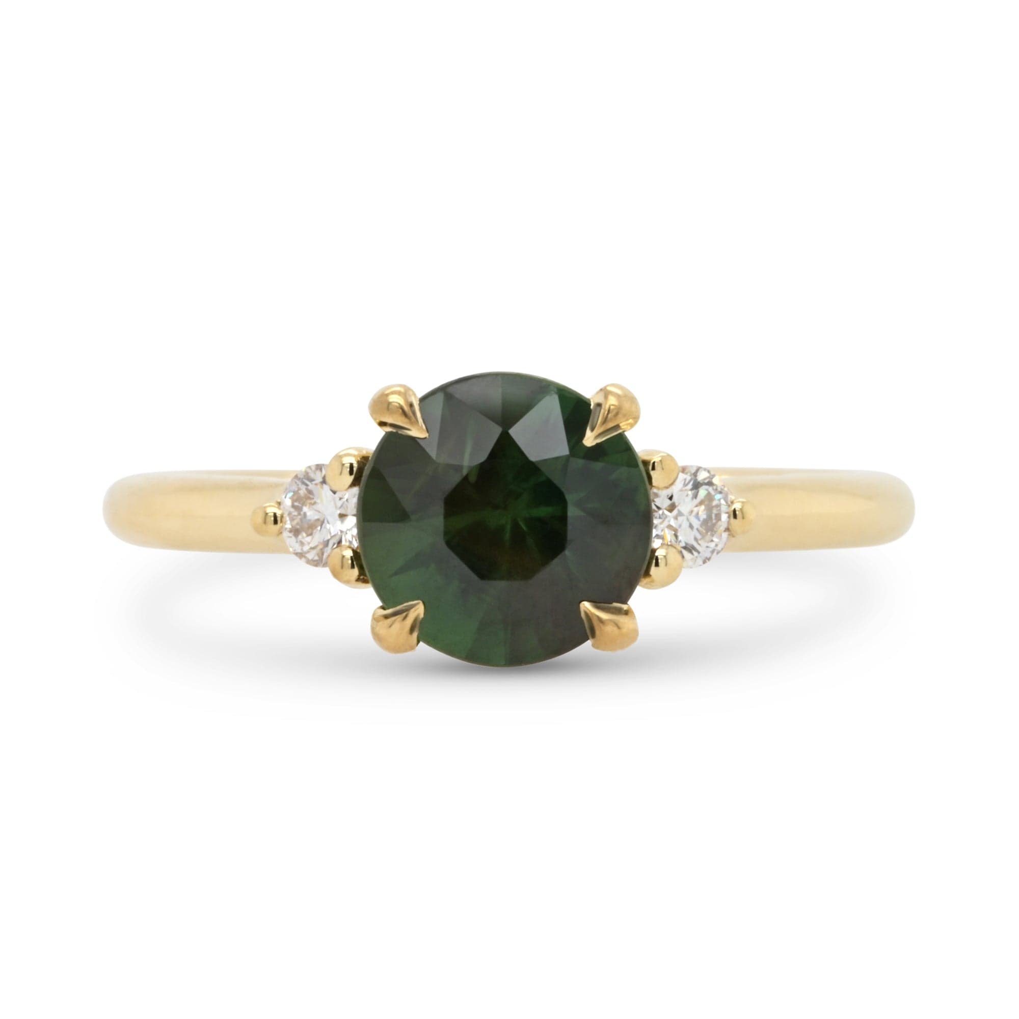 1.62ct Zara Round Green Sapphire & Diamond Engagement Ring