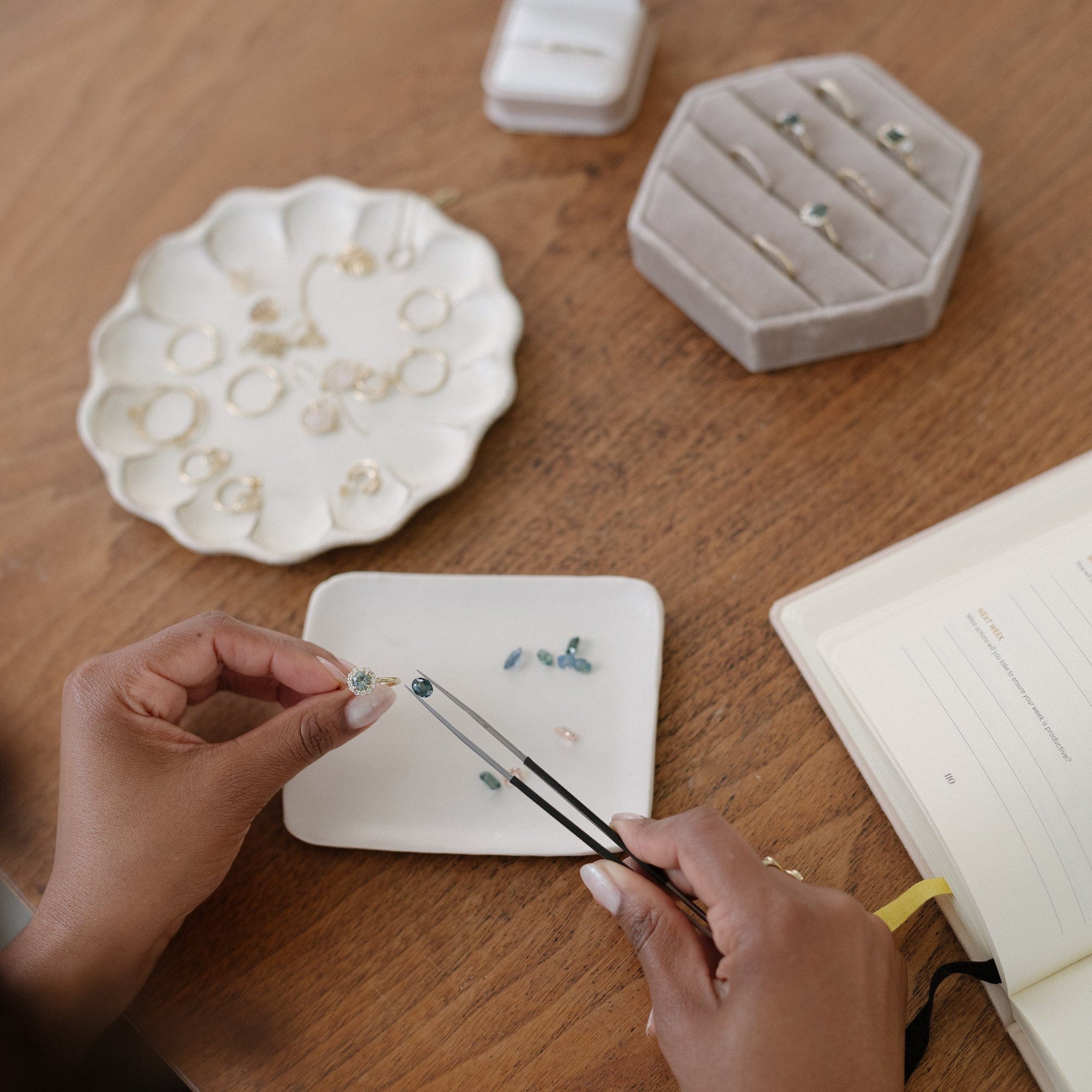 We require a $250 non-refundable procurement fee to begin searching for your perfect gem through our trusted network of gemstone and diamond dealers. Our team will present you with stone options, and you will choose one for your own engagement ring.