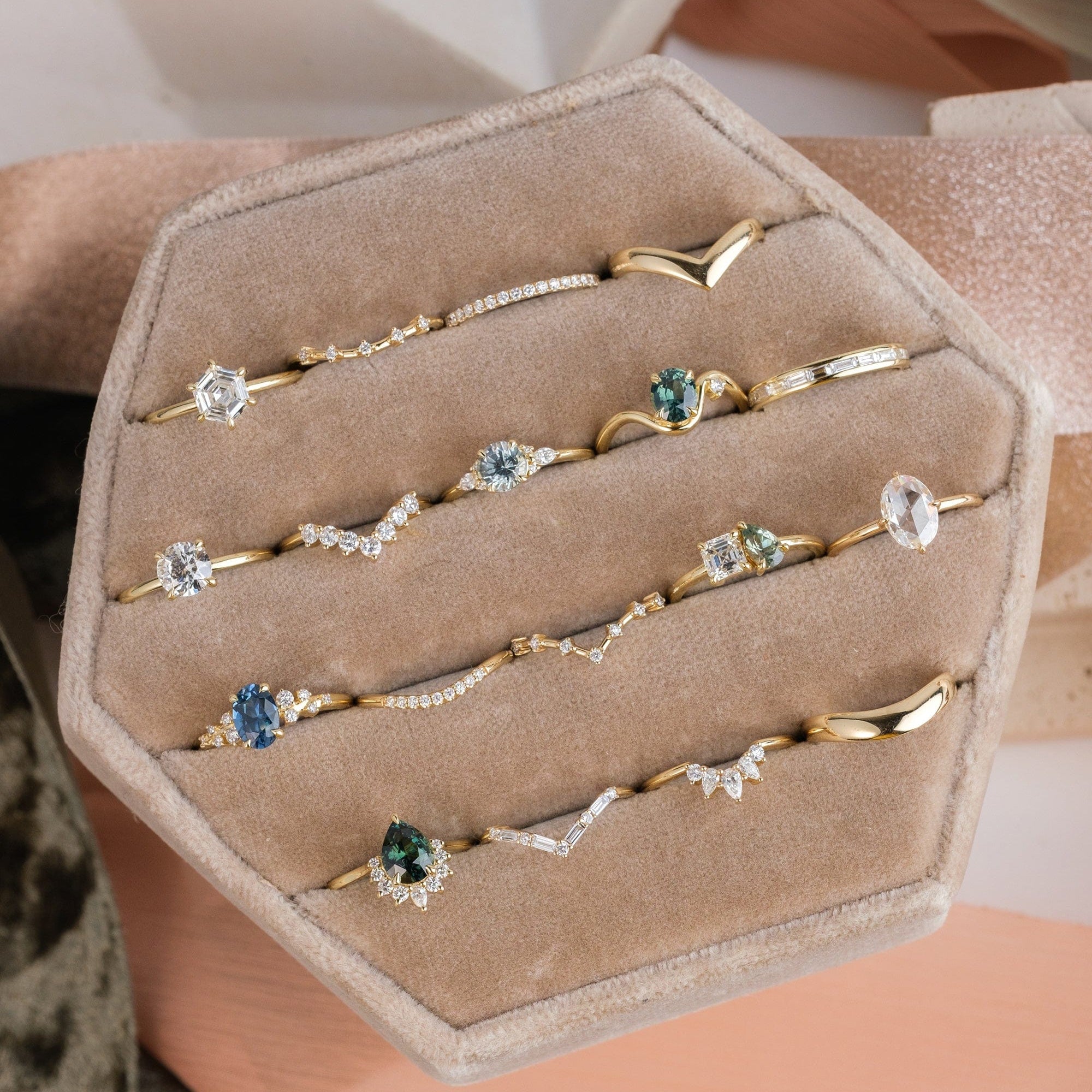 Join us in person or virtually to discuss and buy a custom engagement ring that fits what you're looking for. During your 30-minute appointment, we’ll answer your questions, measure your ring size, and show you custom ring settings that match your lifestyle and aesthetic. This step is also when we can discuss engraved rings.