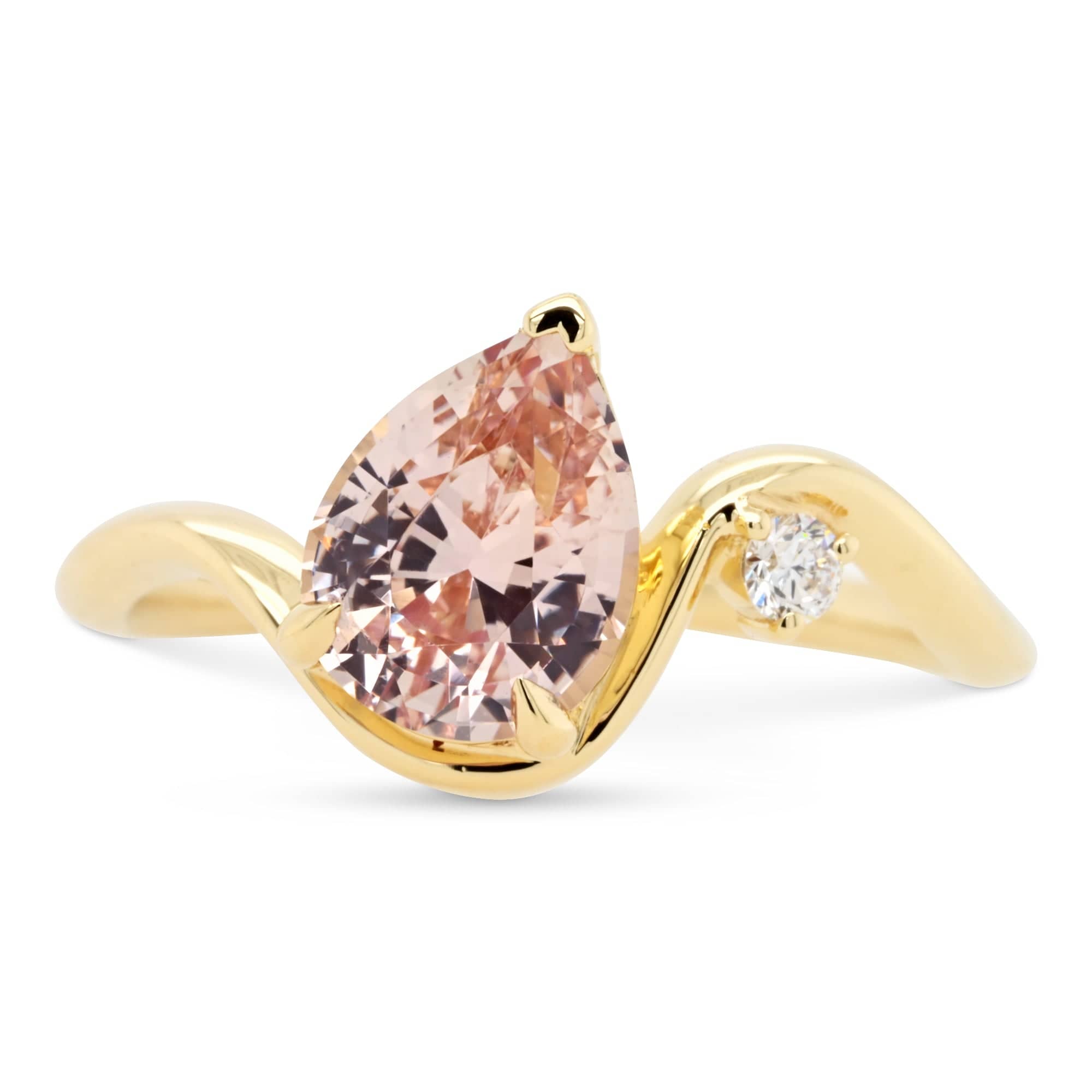 1.72ct Venus Pear Peach Sapphire & Diamond Engagement Ring